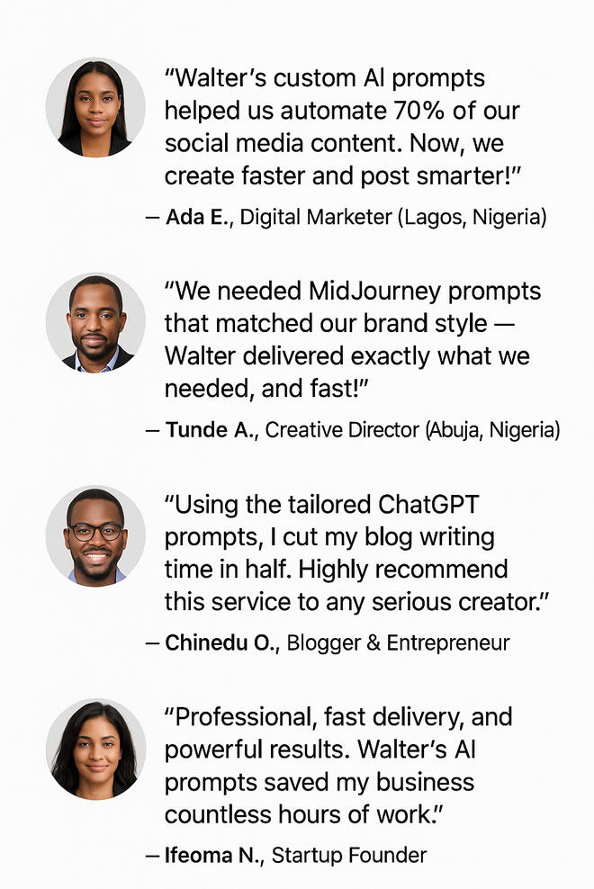 Tailored ChatGPT and AI prompts for businesses, creators, and tech enthusiasts. Elevate your AI game, whether you’re in Nigeria or globally.